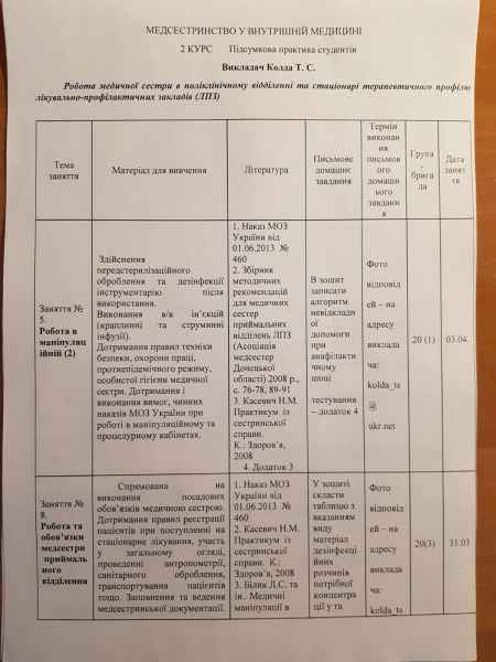Робота медичної сестри в поліклінічному відділенні та стаціонарі